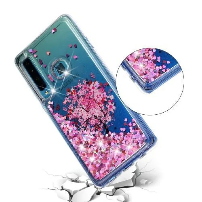 Glitter homokóra zselés tok Samsung Galaxy A9 - virágzó fa