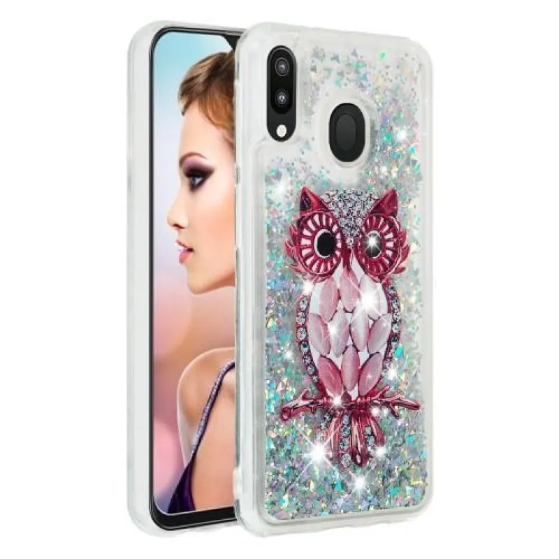 Csillogó szilikon tok Samsung Galaxy M20 készülékhez bagoly motívummal