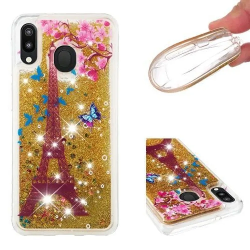 Csillogó szilikon tok Samsung Galaxy M20 készülékhez Eiffel-torony motívummal