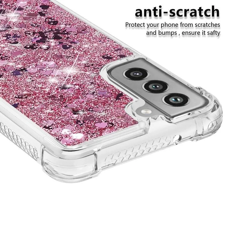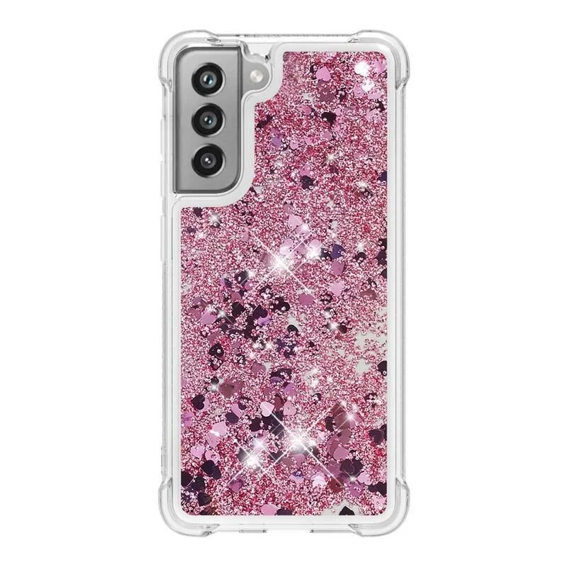 Glitter homokóra zselés tok Samsung Galaxy S21 FE 5G - rózsaarany/szív