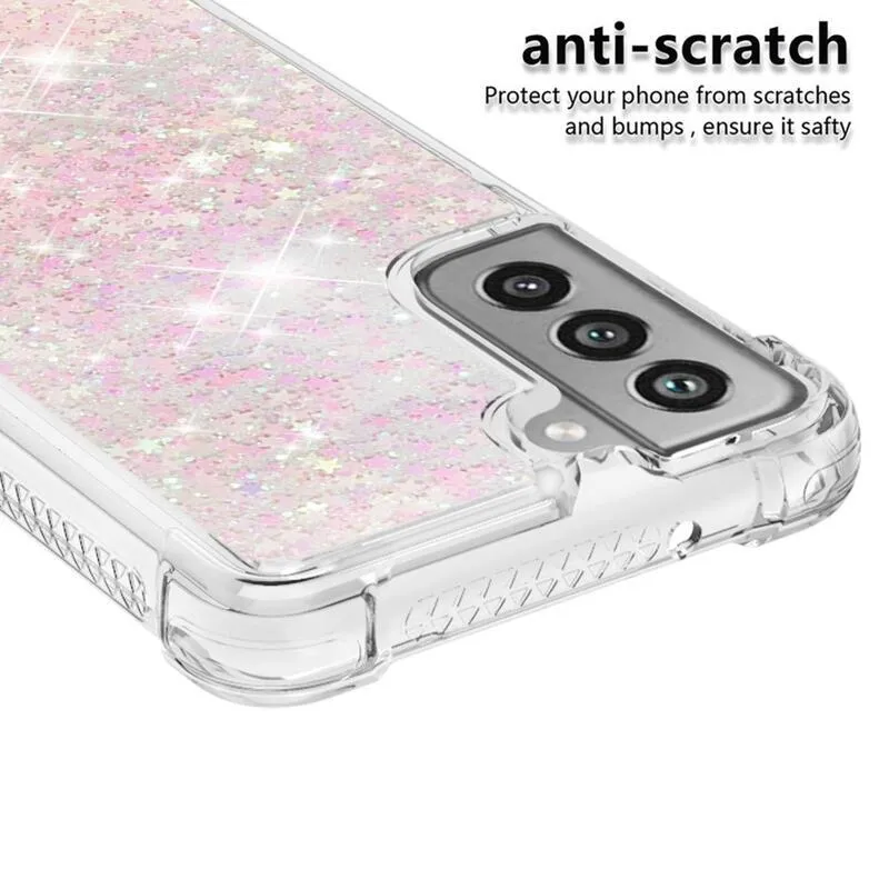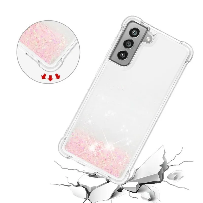 Csillogó rózsaszín/csillag szilikon telefon tok Samsung Galaxy S21 FE 5G-hez