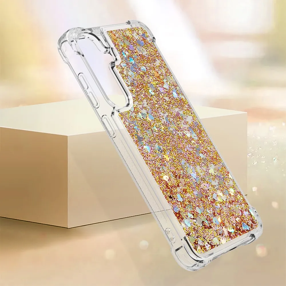Hourglass csillogó zselés borítás Samsung Galaxy S24+ készülékhez - arany/szív