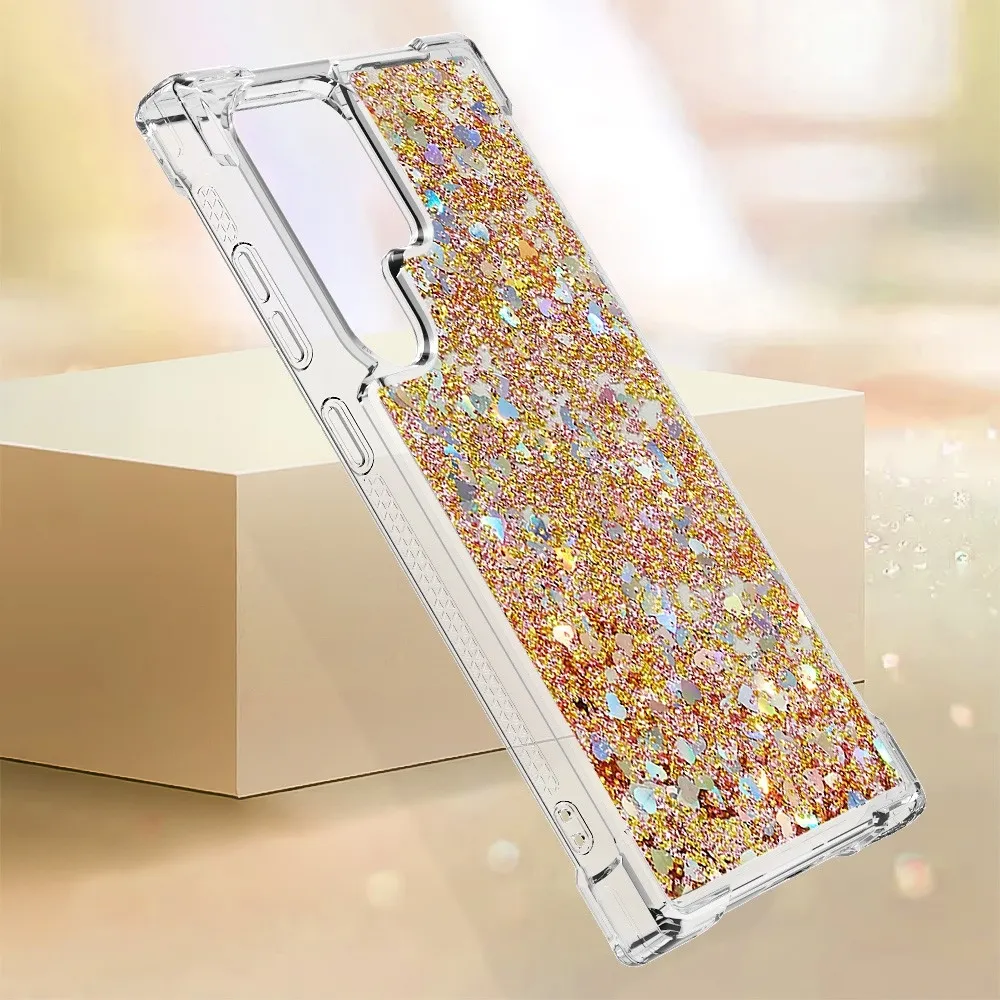 Gél homokóra borítás Glitter Samsung Galaxy S24 Ultra - arany/szív