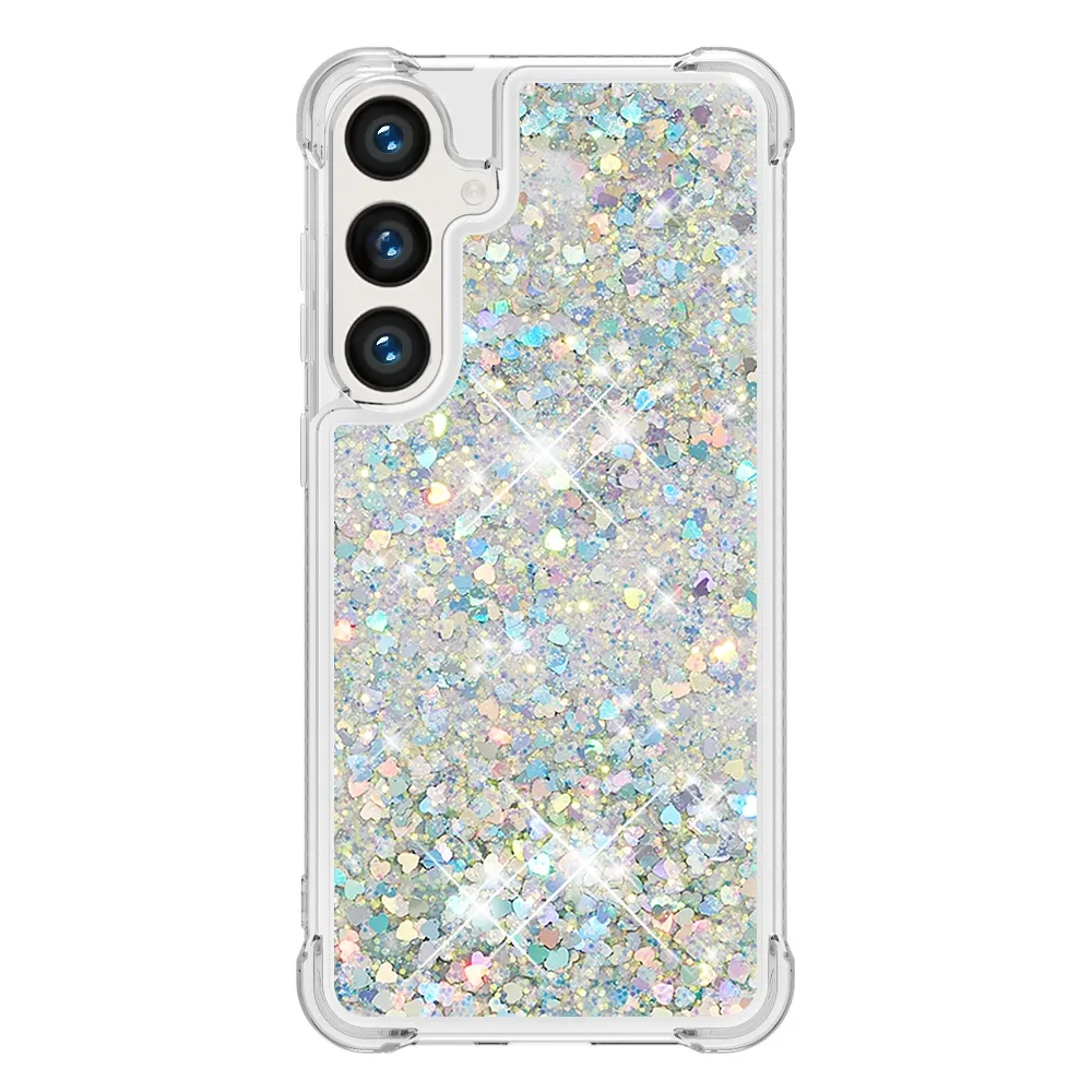 Glitter homokóra zselés tok Samsung Galaxy S26+ készülékhez - ezüst/szív