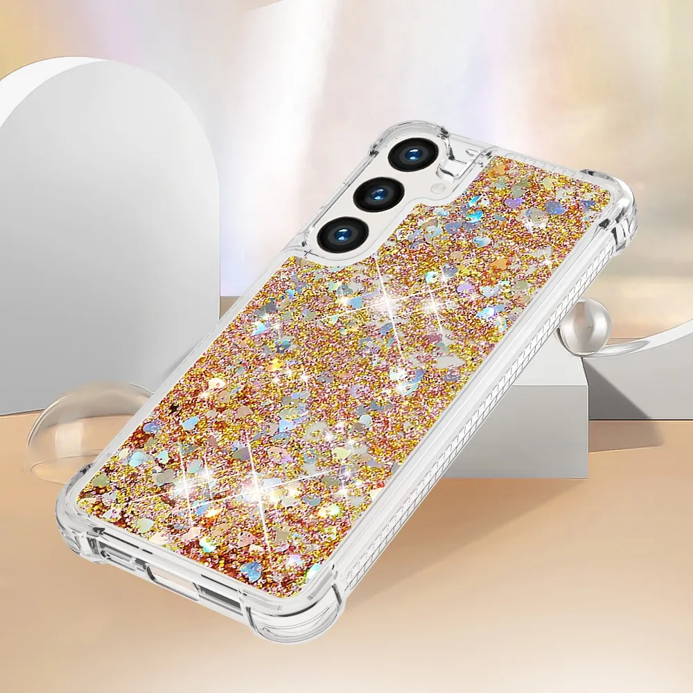 Glitter homokóra zselés tok Samsung Galaxy S26/S26 Pro készülékhez - arany/szív