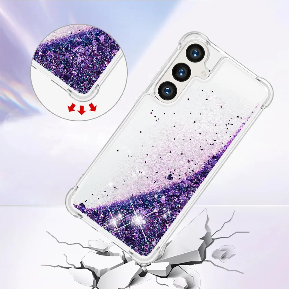 Sötét lila szívekkel homokóra zselés borító Glitter Samsung Galaxy S26/S26 Pro készülékhez