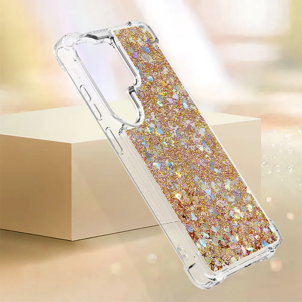 Glitter homokóra zselés tok Samsung Galaxy S26 Ultra készülékhez - arany/szív