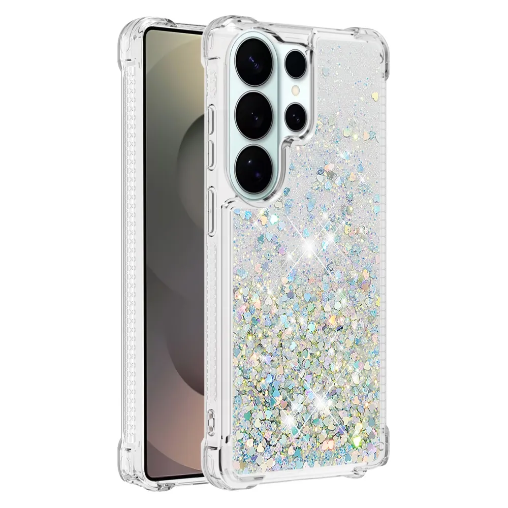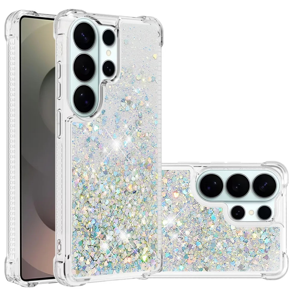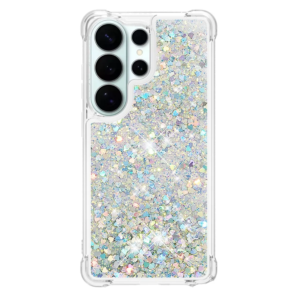 Glitter homokóra zselés tok Samsung Galaxy S26 Ultra készülékhez - ezüst/szív
