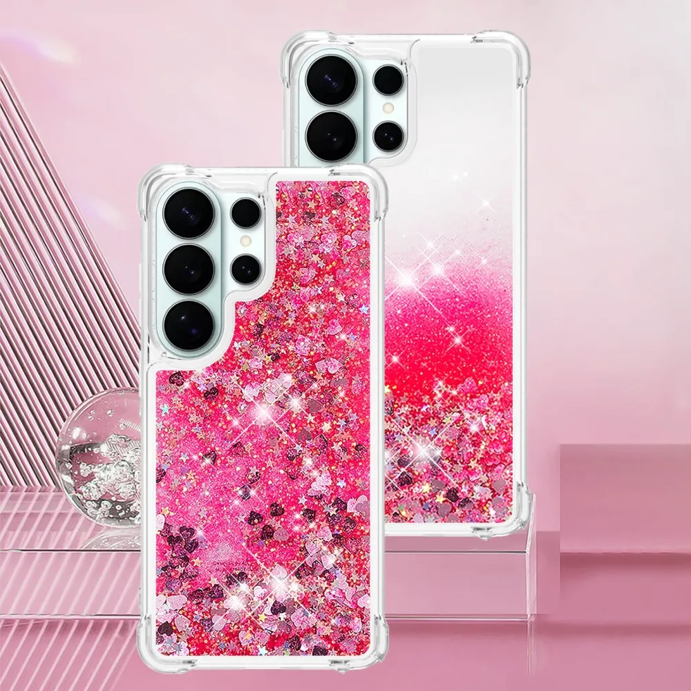 Glitter homokóra zselés tok Samsung Galaxy S26 Ultra készülékhez - rózsaszín/szívek