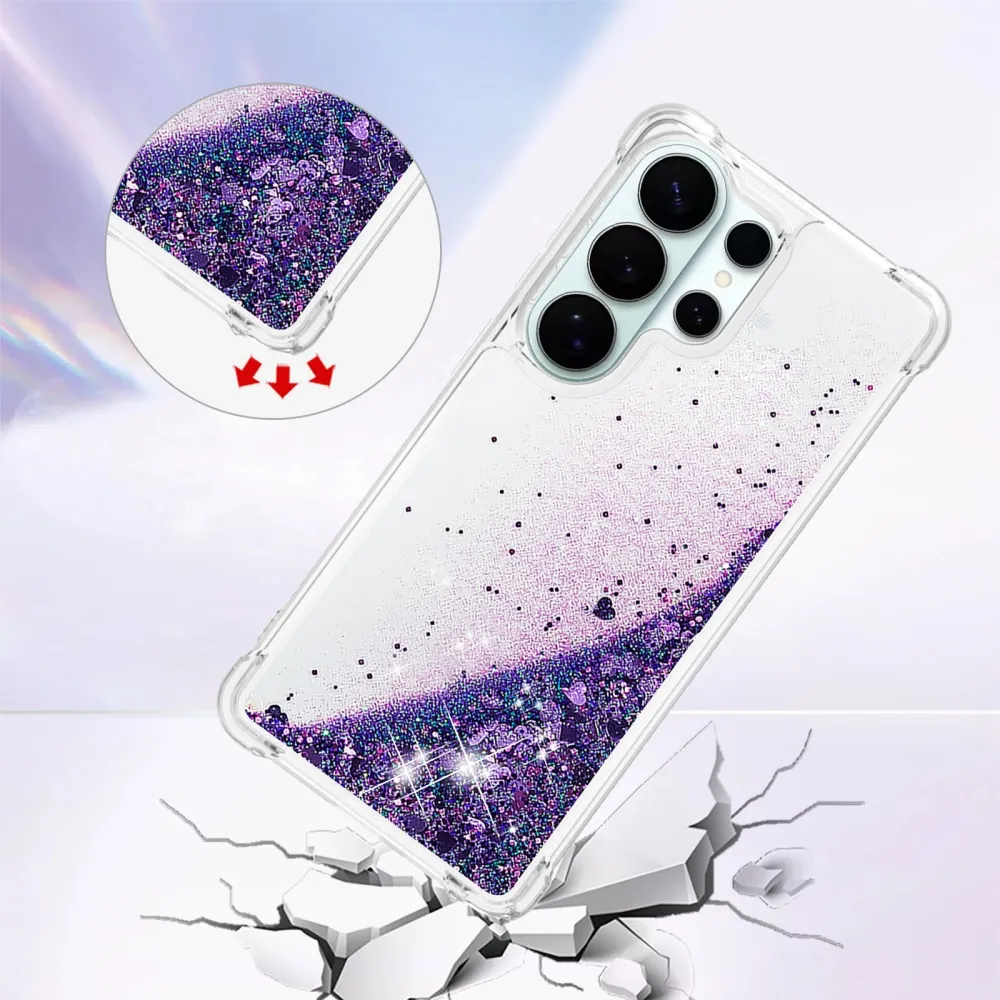 Sötét lila szívekkel homokóra zselés borító Glitter Samsung Galaxy S26/S26 Pro készülékhez