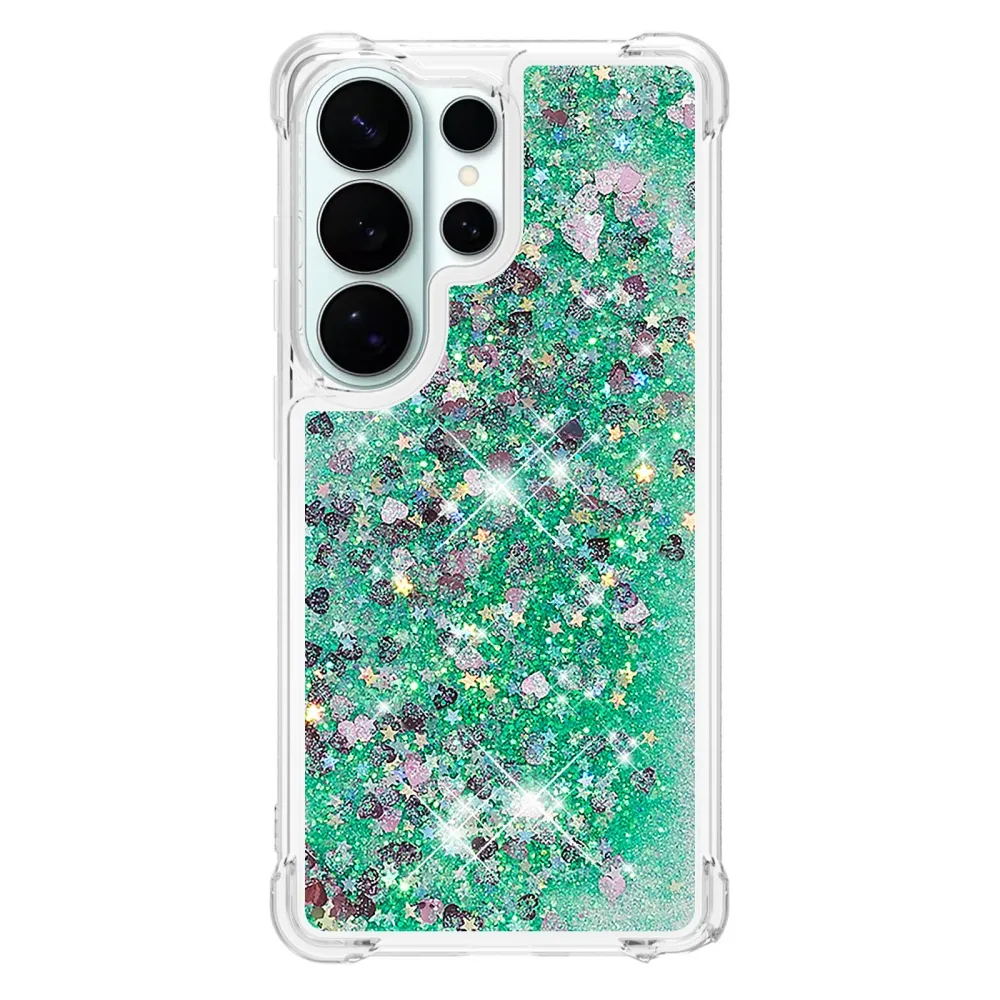 Glitter homokóra zselés tok Samsung Galaxy S26 Ultra készülékhez - zöld/szívek