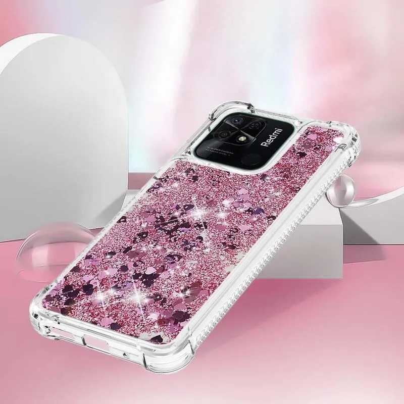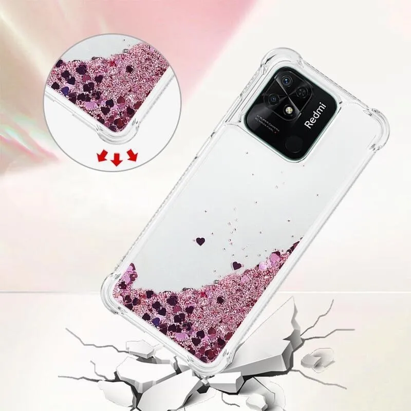 Glitter rózsaarany/szív szilikon tok Xiaomi Redmi 10C-hez