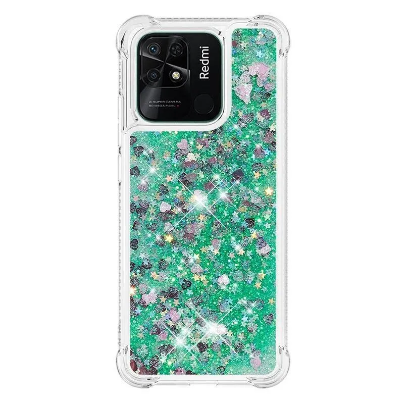 Csillogó zöld/szív szilikon tok Xiaomi Redmi 10C-hez