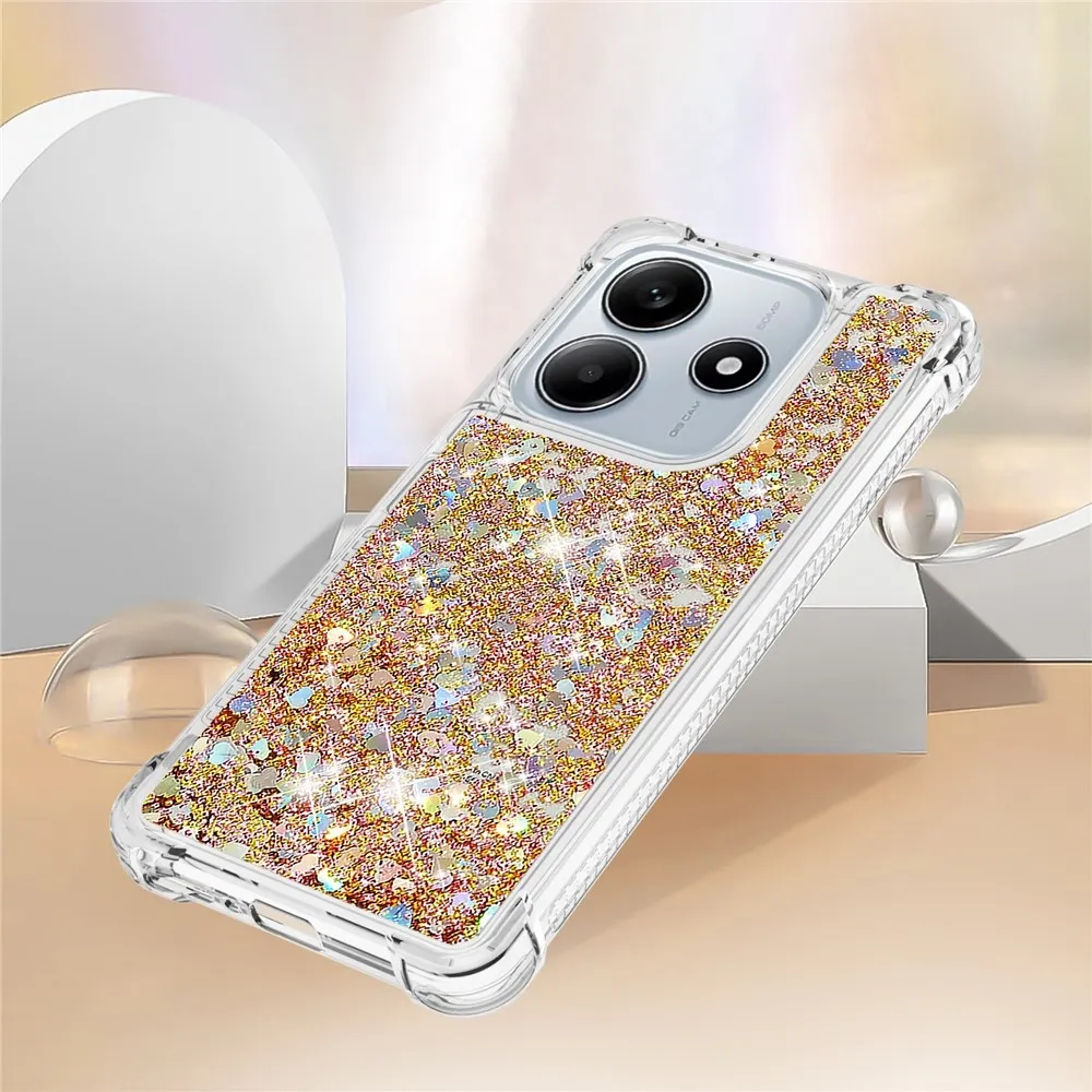 Csillogó arany szilikon tok szívekkel Xiaomi Redmi Note 14 5G-hez