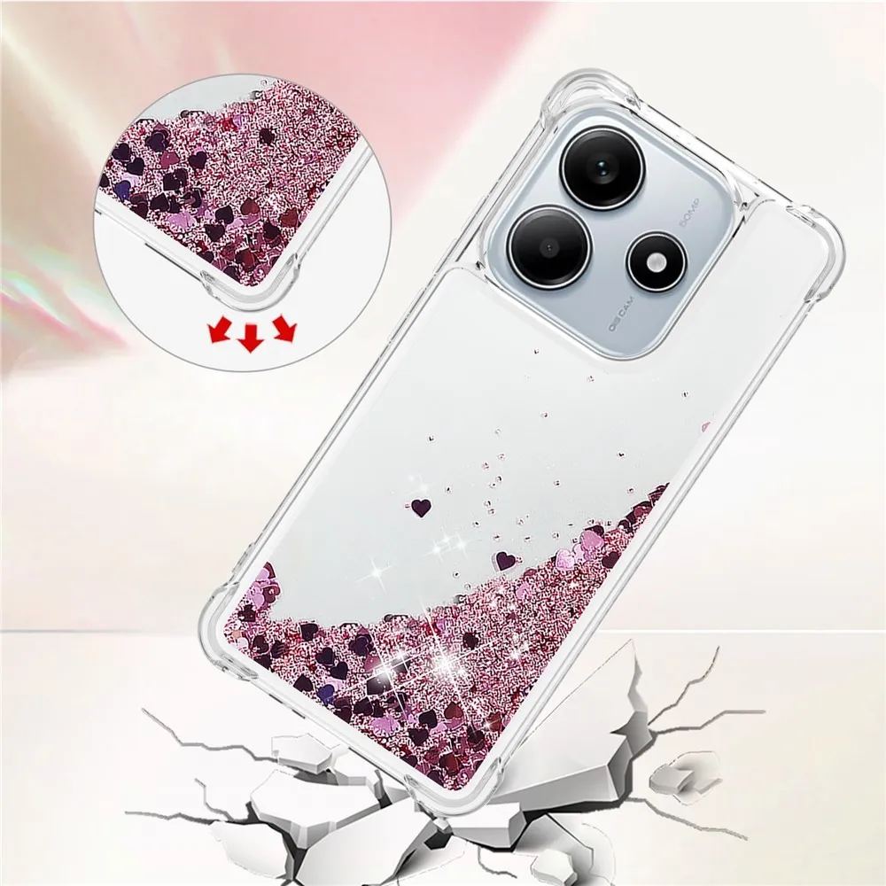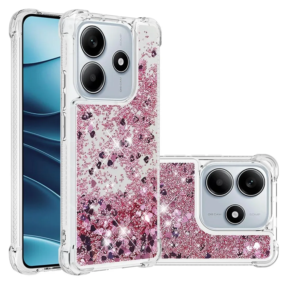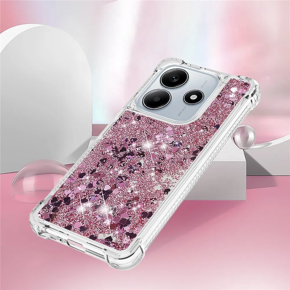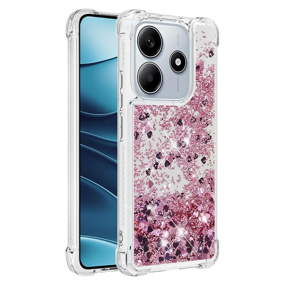 Rózsaszín és arany csillogó szilikon tok szívekkel a Xiaomi Redmi Note 14 5G-hez