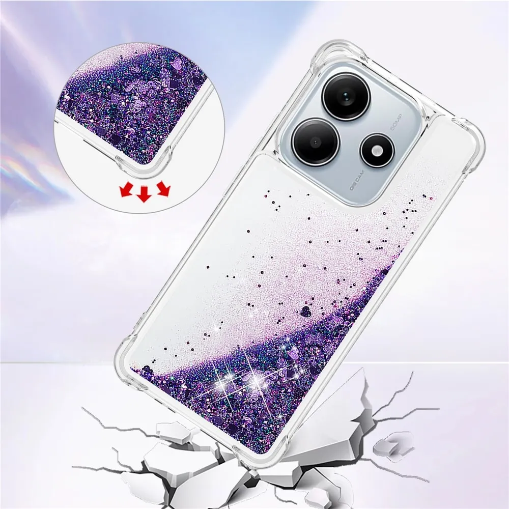 Csillogó sötétlila szilikon tok szívekkel a Xiaomi Redmi Note 14 5G számára