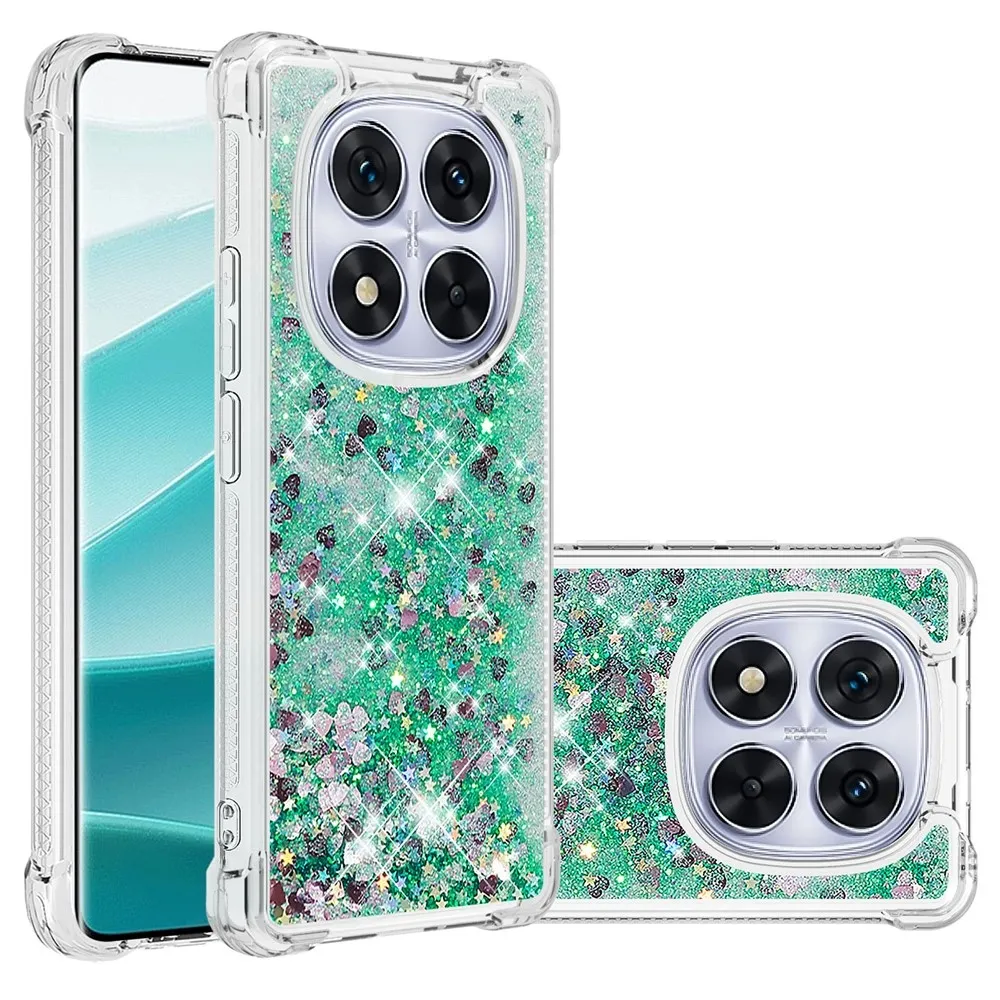 Glitter homokóra zselés tok Xiaomi Redmi Note 14 Pro 5G/Poco X7 5G - zöld/szív