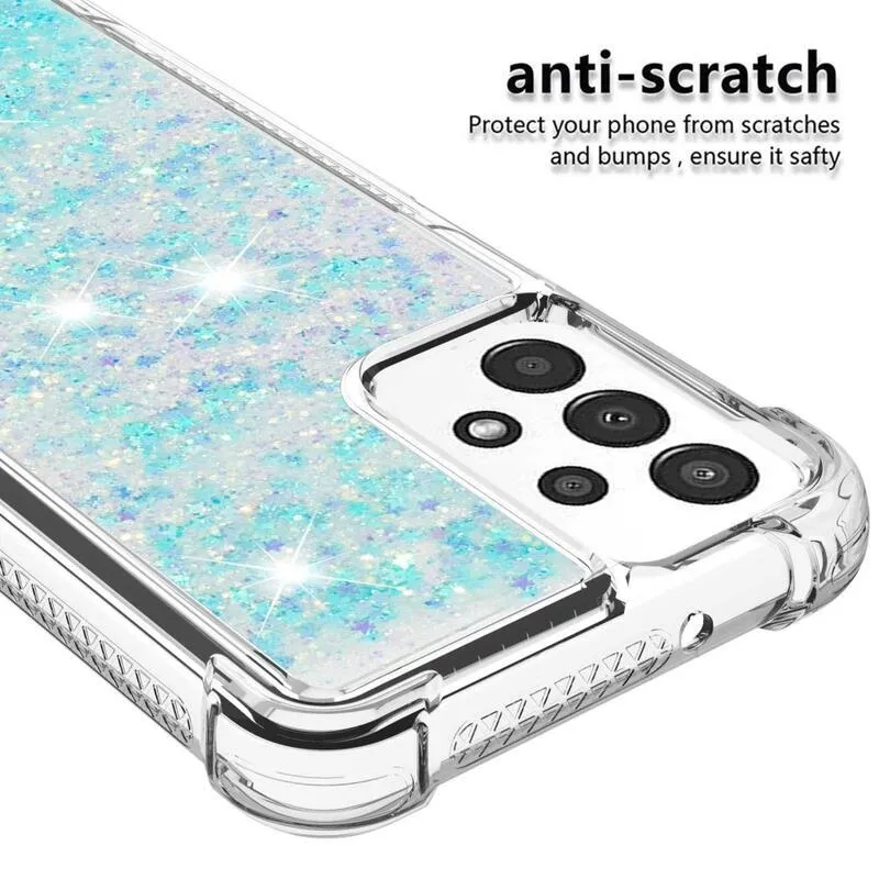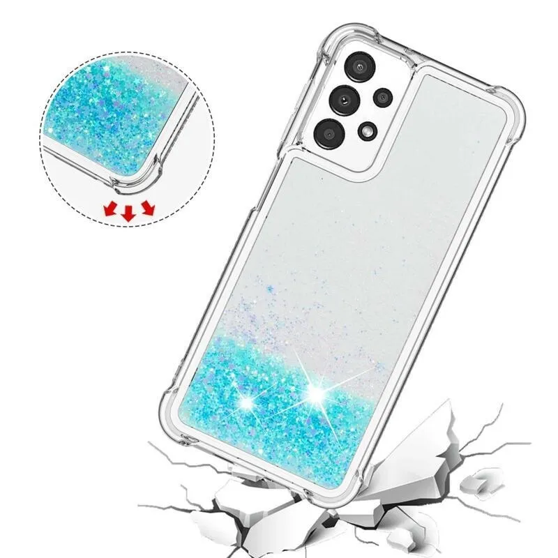 Glitter zselés homokóra hüvely Samsung Galaxy A13 4G - kék / csillagok