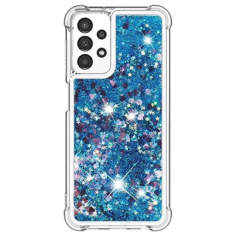 Glitter zselés homokóra hüvely Samsung Galaxy A13 4G készülékhez - kék/szív