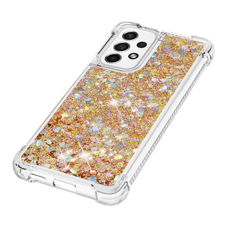 Csillogó arany/szív szilikon tok Samsung Galaxy A53 5G-hez