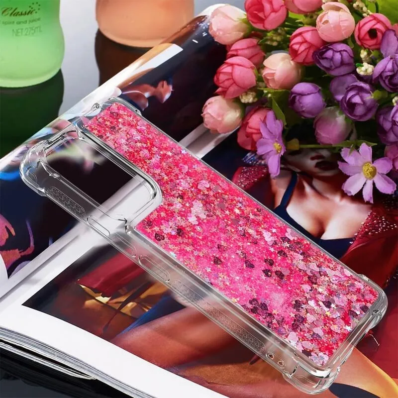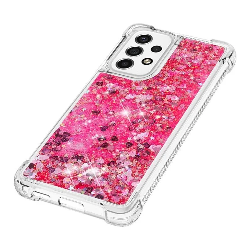Glitter rózsaszín/szív szilikon telefon tok Samsung Galaxy A53 5G-hez