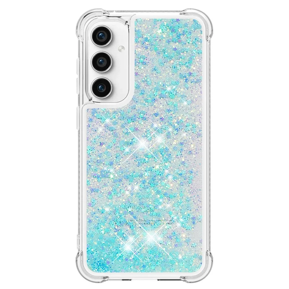 Glitter zselés homokóra hüvely Samsung Galaxy S23 FE készülékhez - kék / csillagok