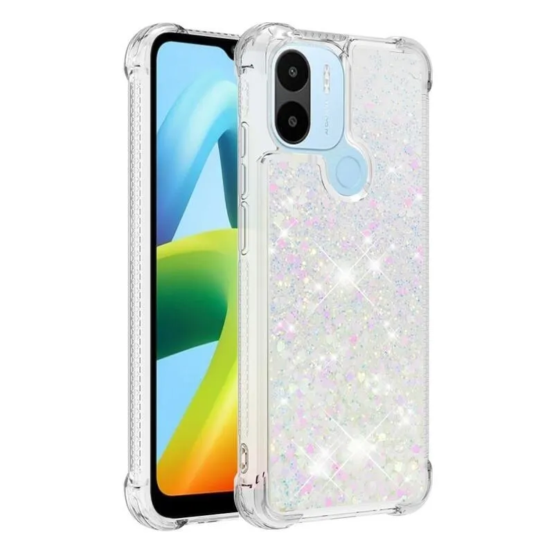 Glitter zselés homokóra hüvely Xiaomi Redmi A1+/A2+ - rózsaszín/ezüst/szívecske
