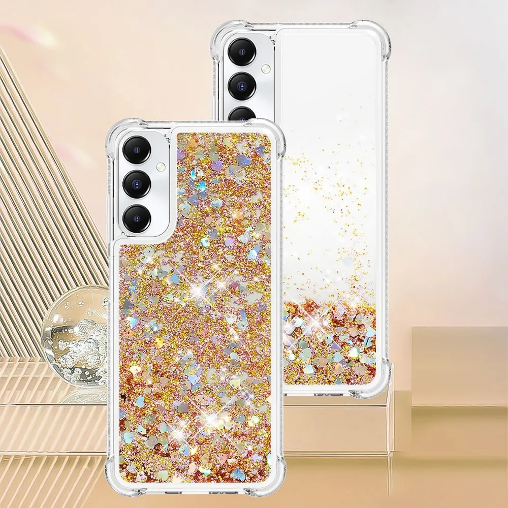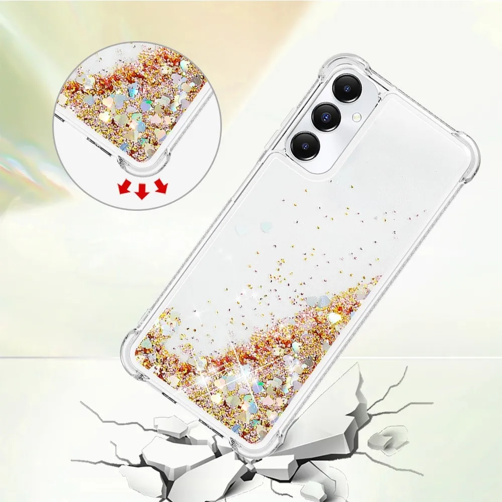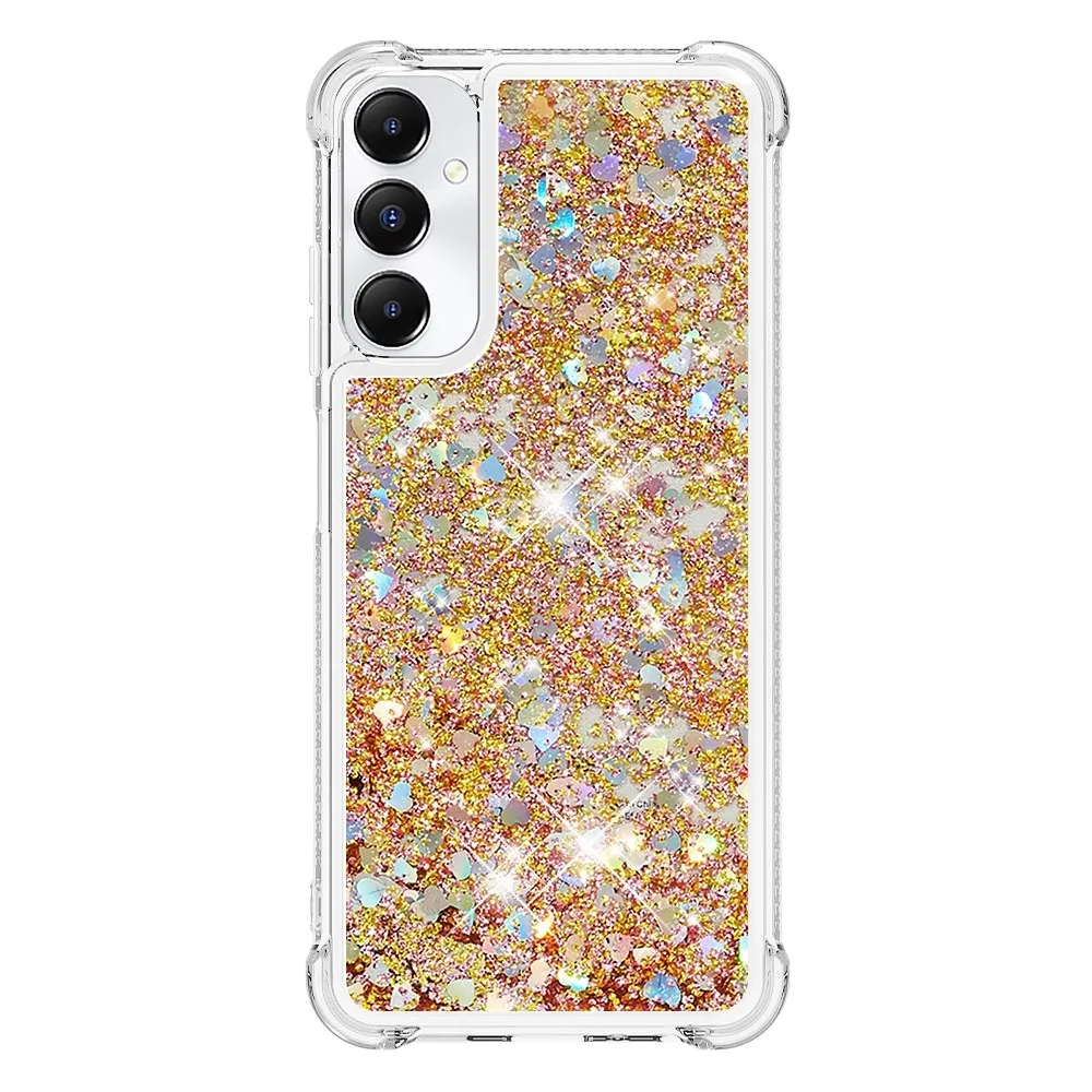 Glitter zselés homokóra tok Samsung Galaxy A05s készülékhez - arany/szív
