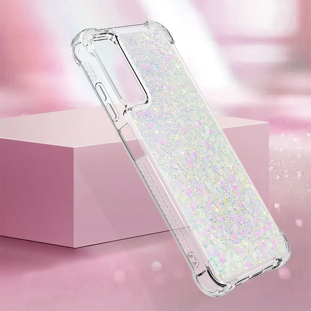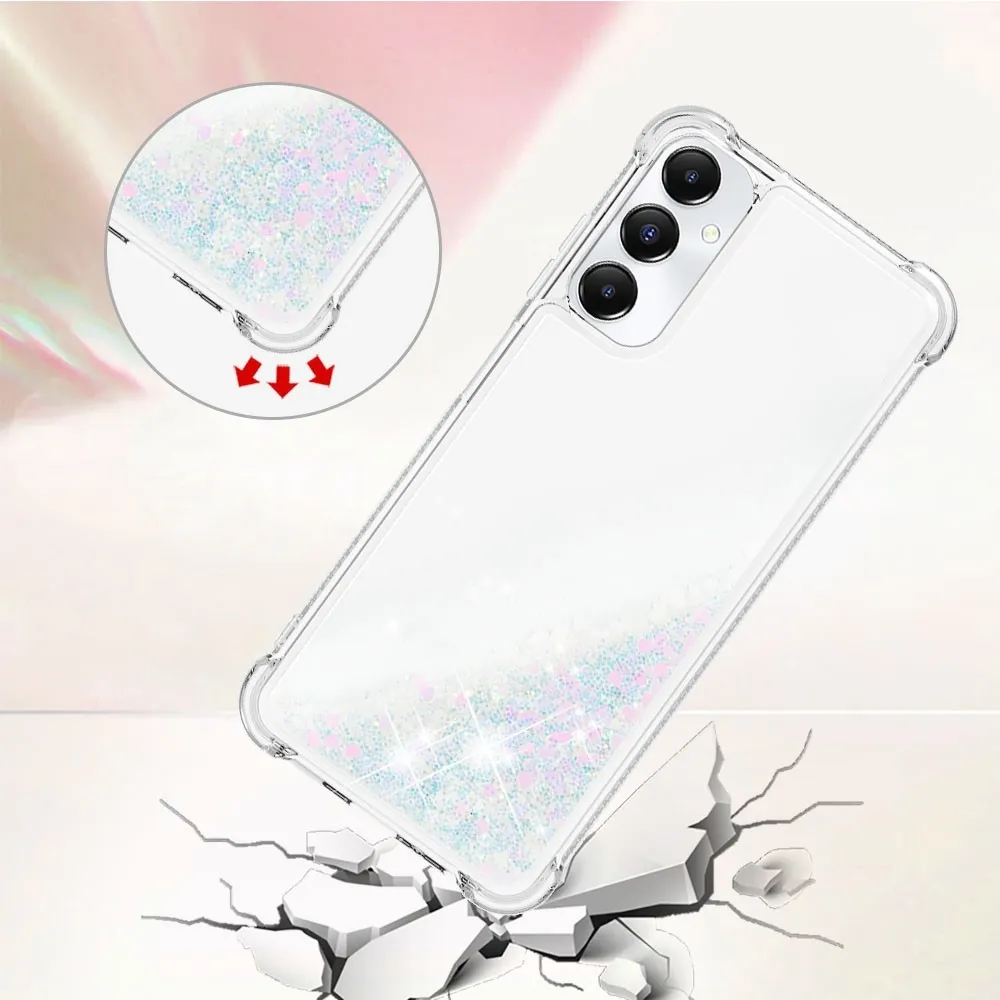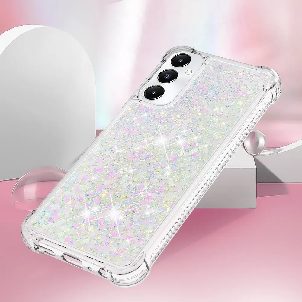 Glitter zselés homokóra tok Samsung Galaxy A05s készülékhez - rózsaszín/ezüst/szív