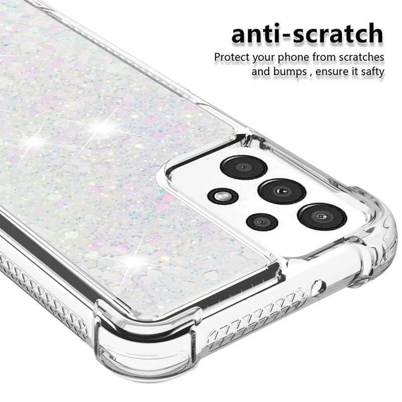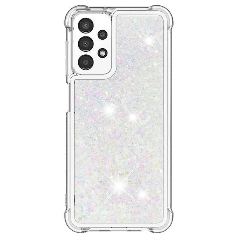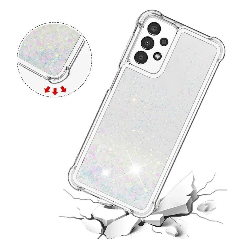 Glitter zselés homokóra tok Samsung Galaxy A13 4G készülékhez - rózsaszín/ezüst/szív