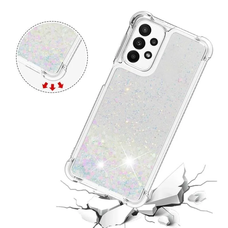 Glitter zselés homokóra tok Samsung Galaxy A23 4G/5G készülékhez - rózsaszín/ezüst/szívecske