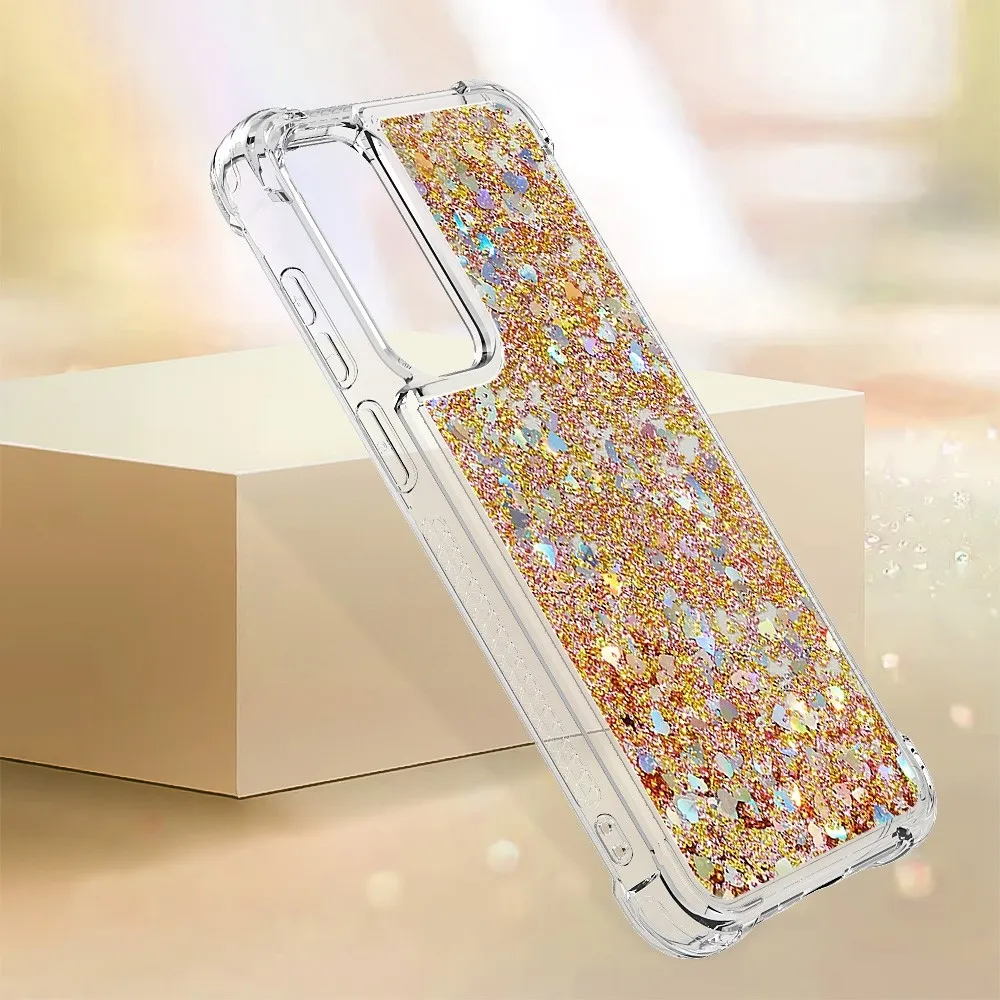 Arany zselés homokóra tok Glitter szívekkel Samsung Galaxy A55 5G számára