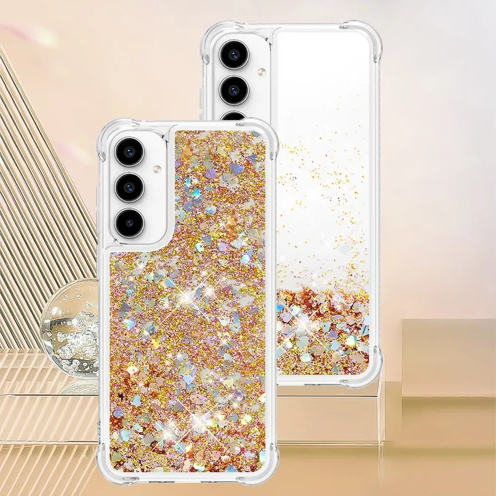 Glitter zselés homokóra tok Samsung Galaxy A55 5G - arany/szív