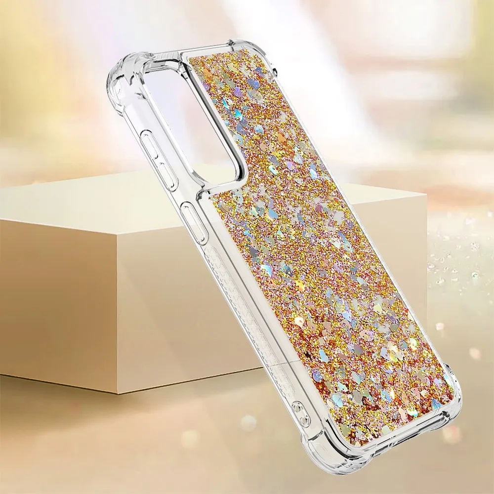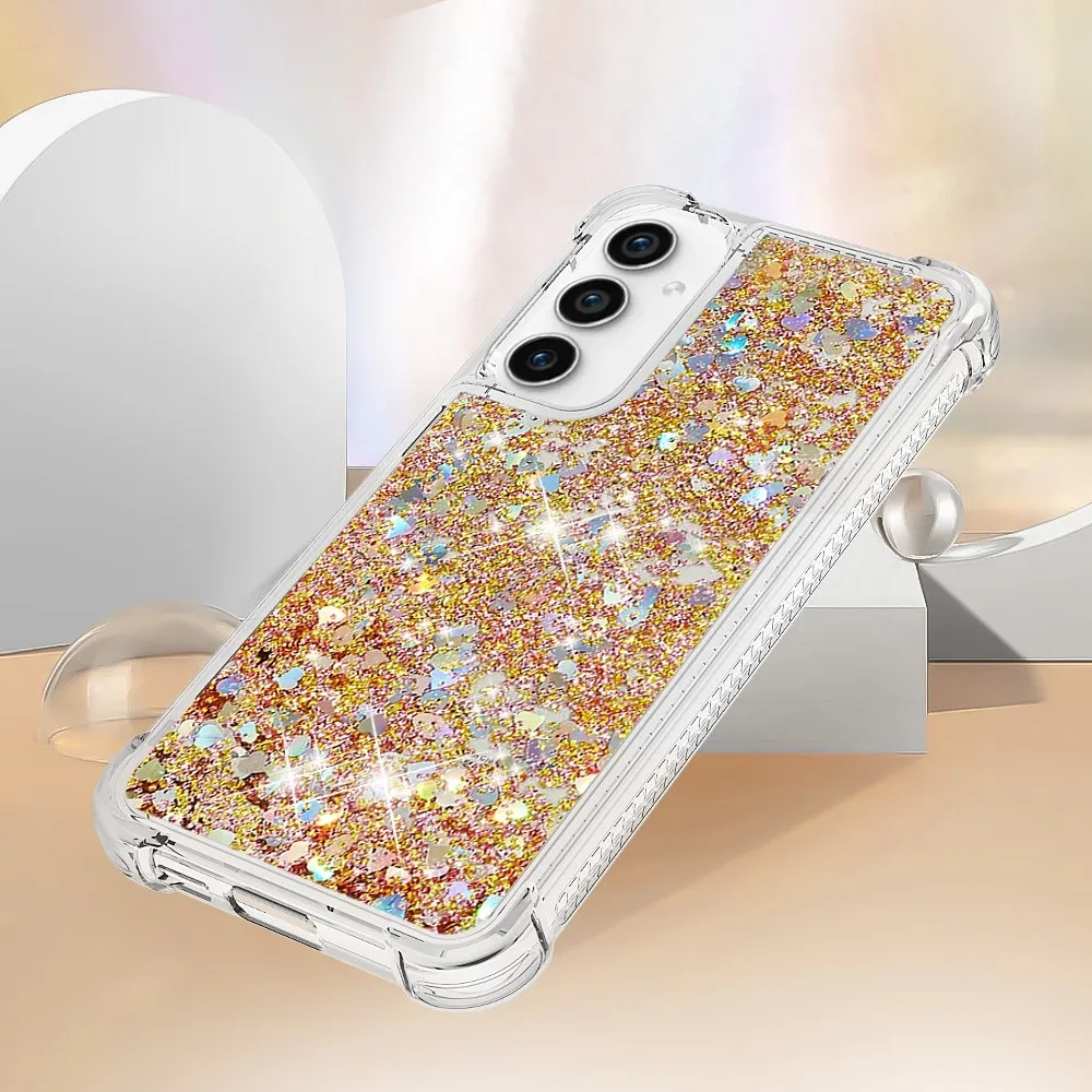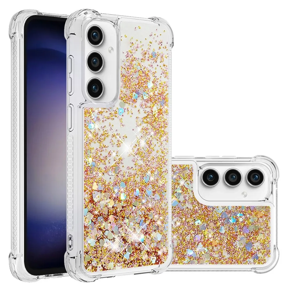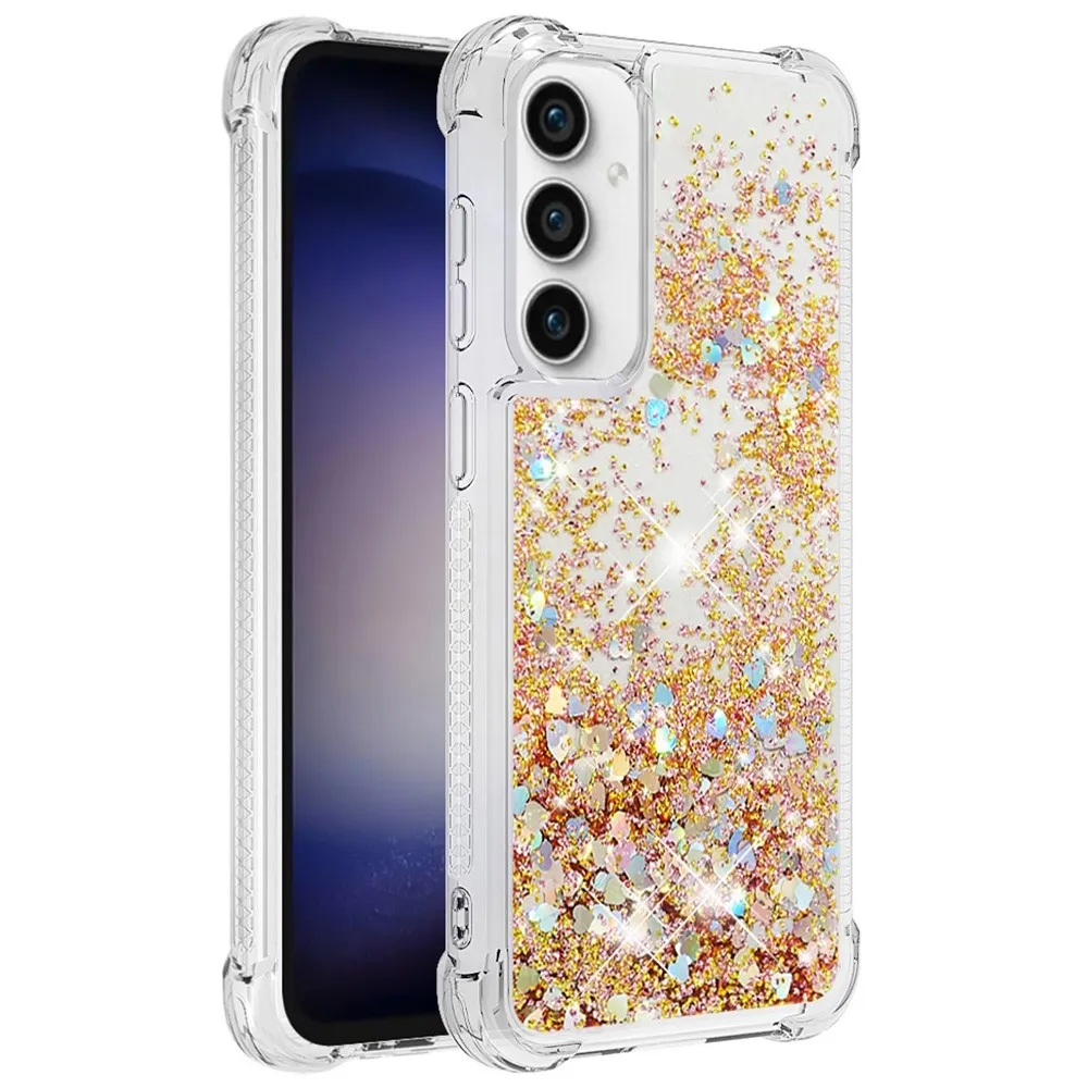 Glitter zselés homokóra tok Samsung Galaxy S23 FE készülékhez - arany/szív