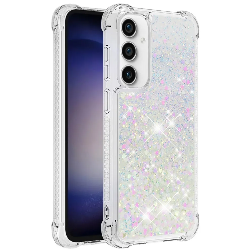 Gél homokóra borítás Glitter Samsung Galaxy S23 FE készülékhez - rózsaszín/ezüst/szív