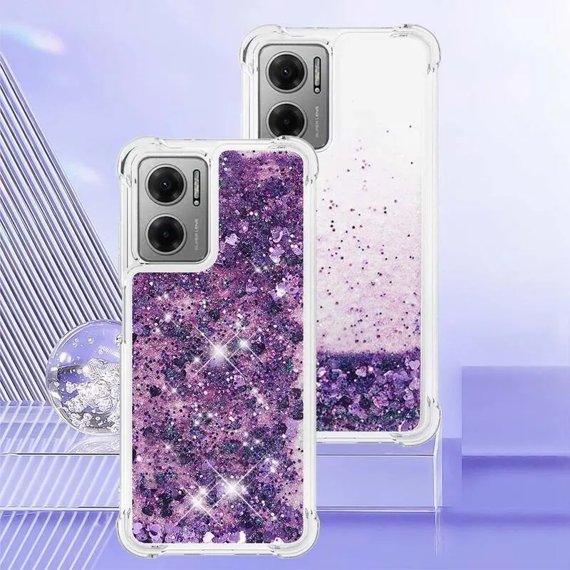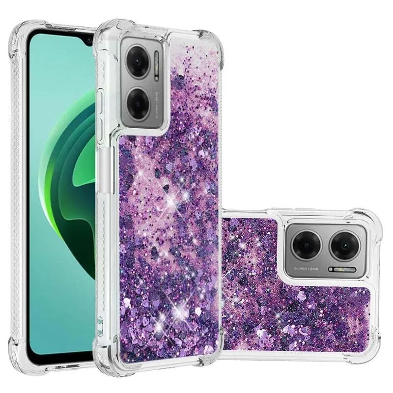 Csillogó sötétlila/szív szilikon tok Xiaomi Redmi 10 5G-hez