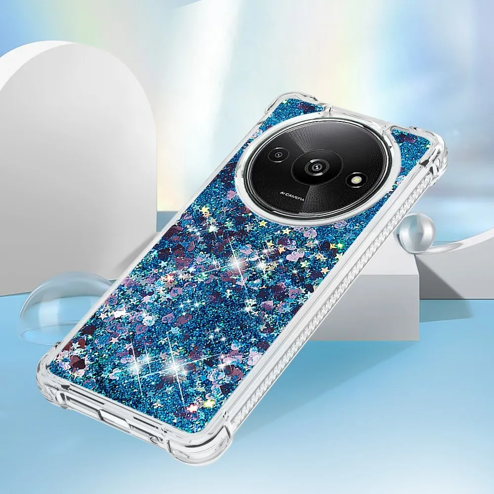 Glitter zselés homokóra tok Xiaomi Redmi A3-hoz - kék/szívek