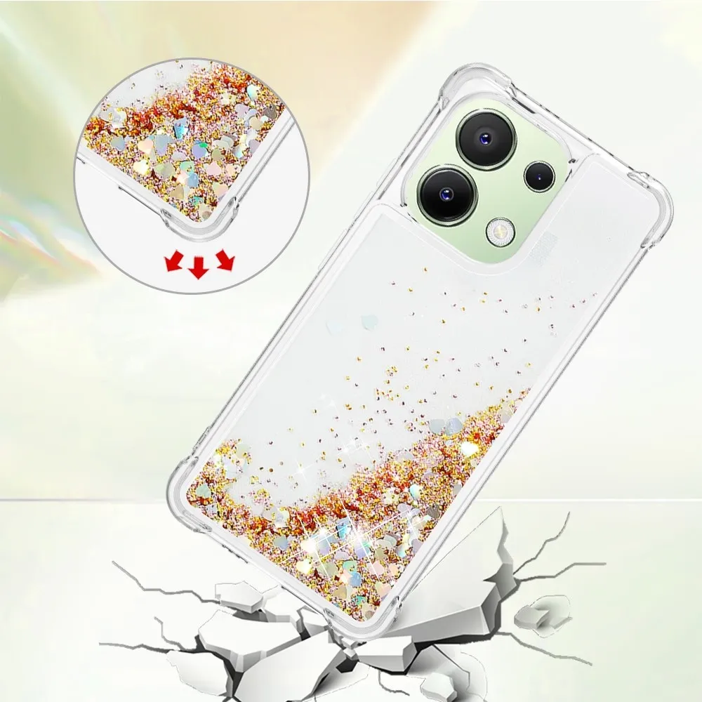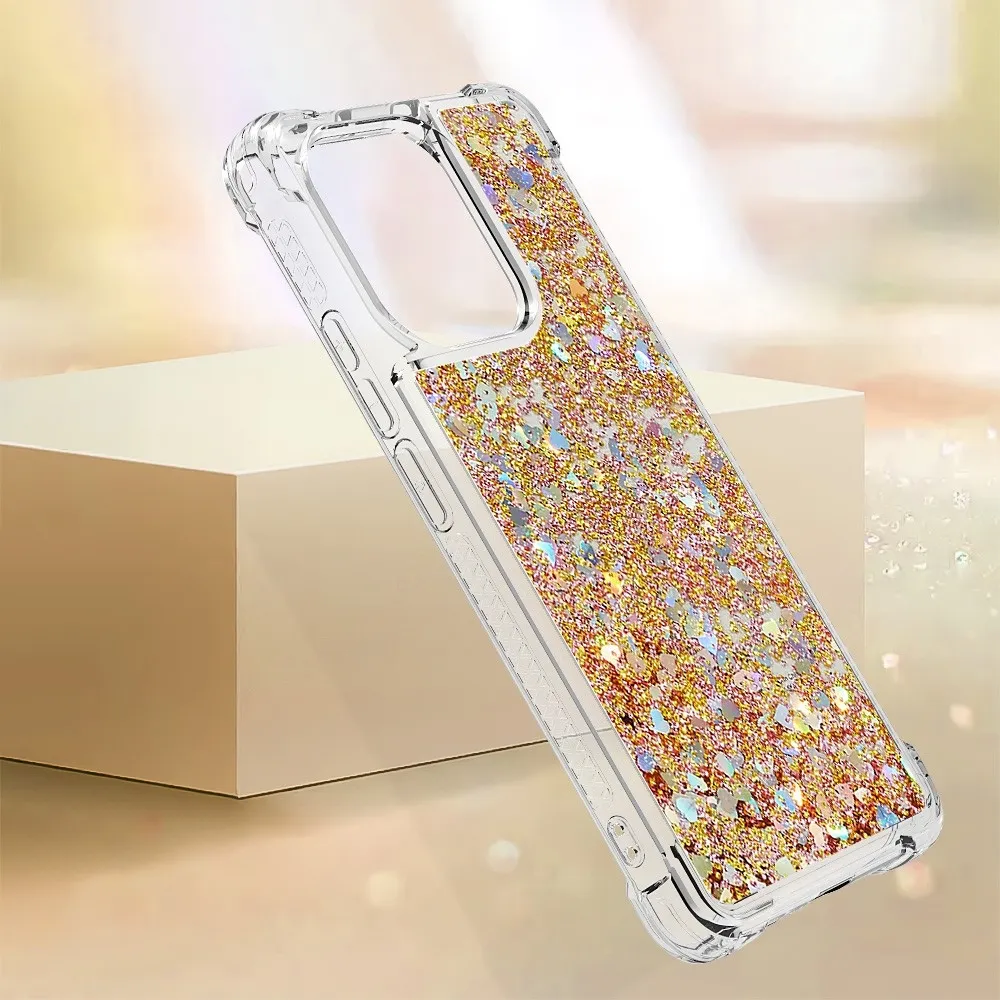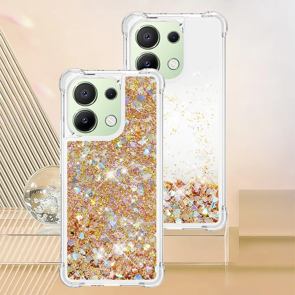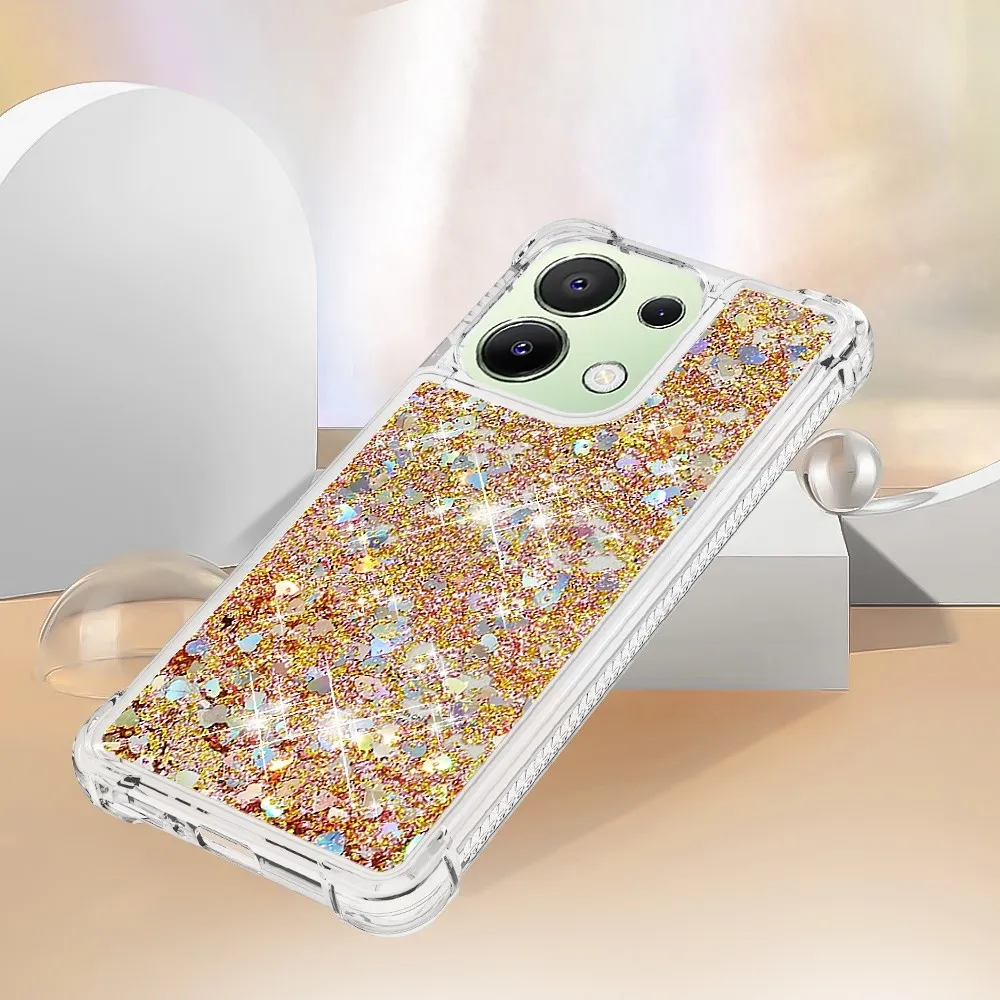 Arany zselés homokóra tok Glitter szívekkel a Xiaomi Redmi Note 13 számára