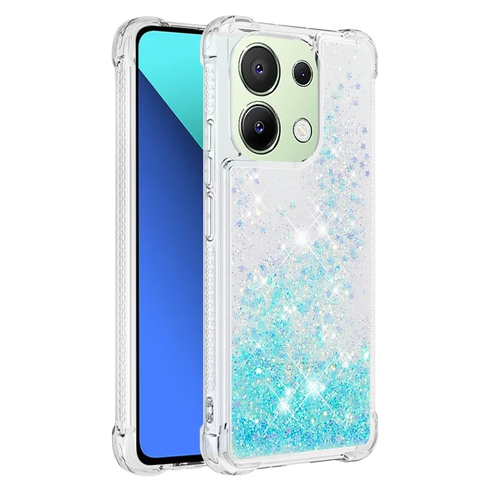 Glitter zselés homokóra tok Xiaomi Redmi Note 13-hoz - kék/csillagok
