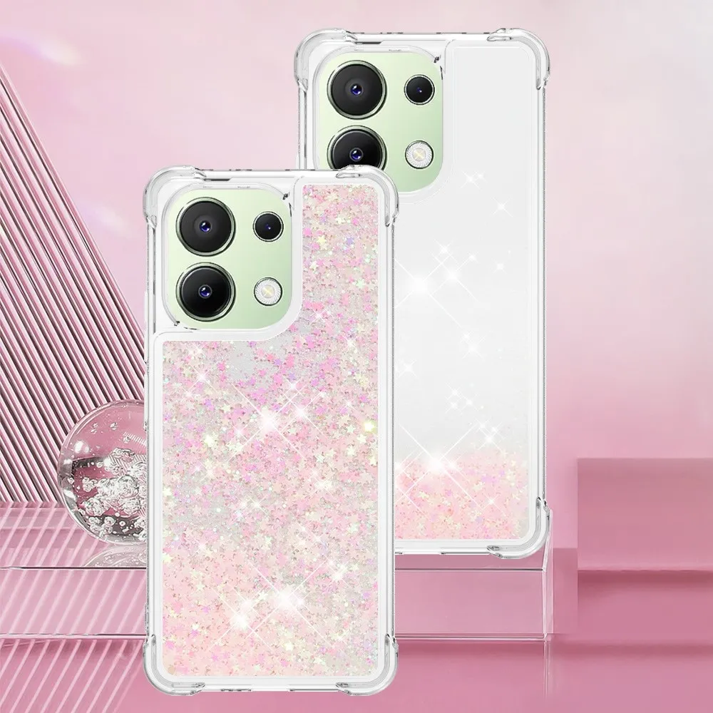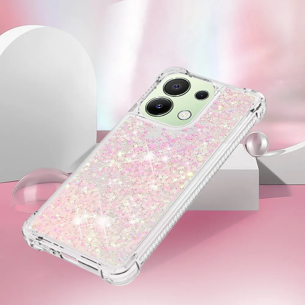 Glitter zselés homokóra tok Xiaomi Redmi Note 13-hoz - rózsaszín/csillagok