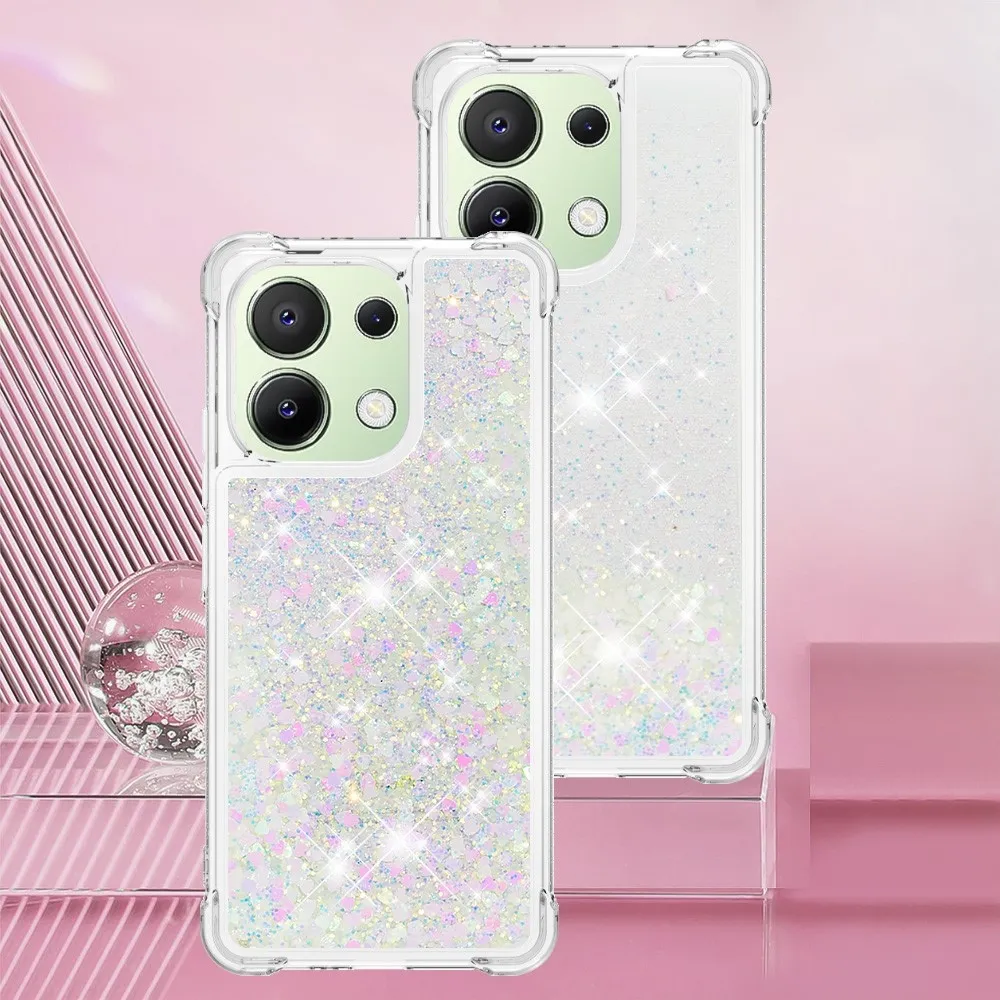 Glitter zselés homokóra tok Xiaomi Redmi Note 13-hoz - rózsaszín/ezüst/szív