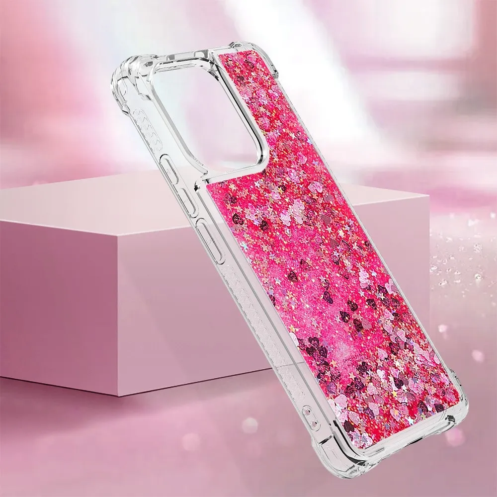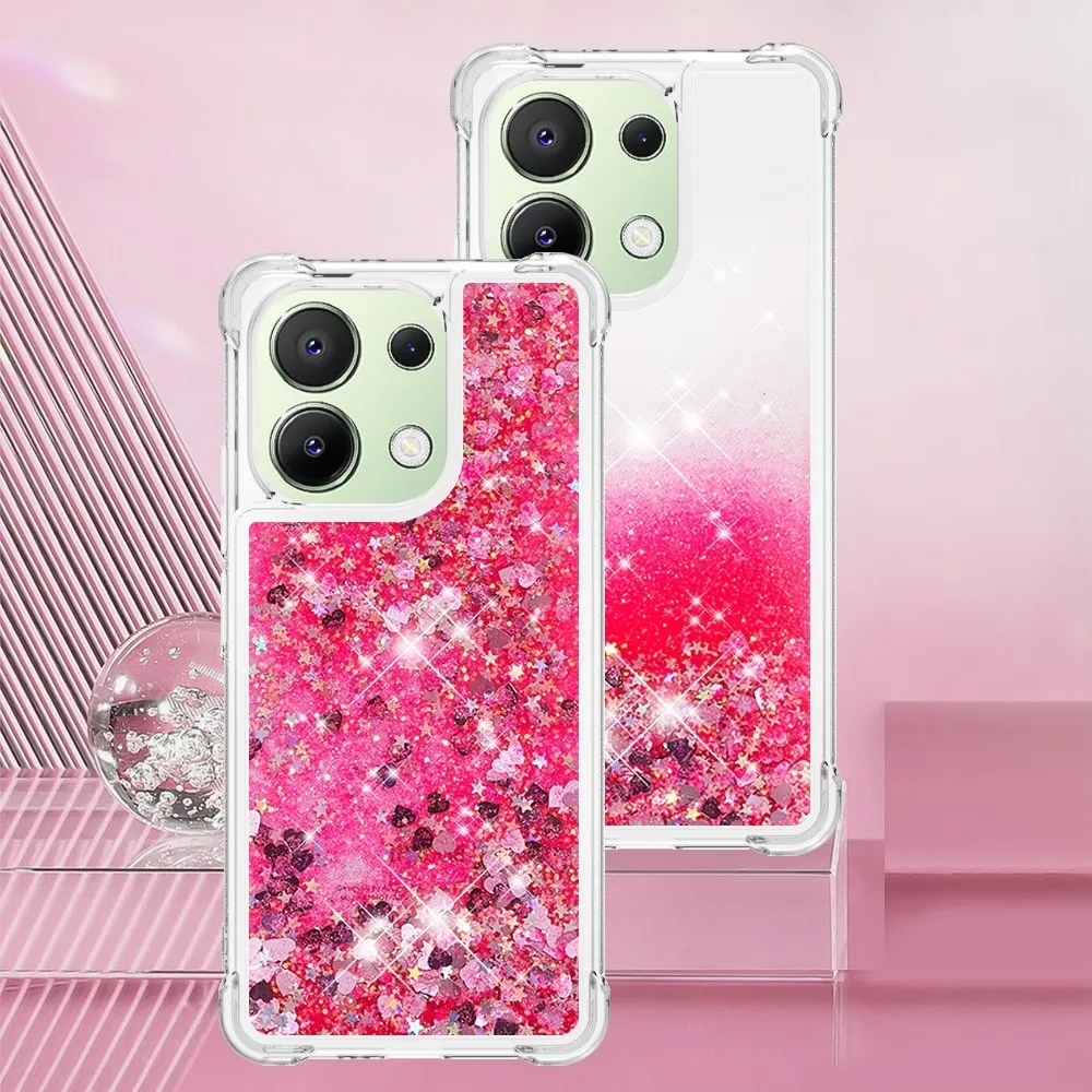 Rózsaszín zselés homokóra tok Glitter szívekkel a Xiaomi Redmi Note 13-hoz