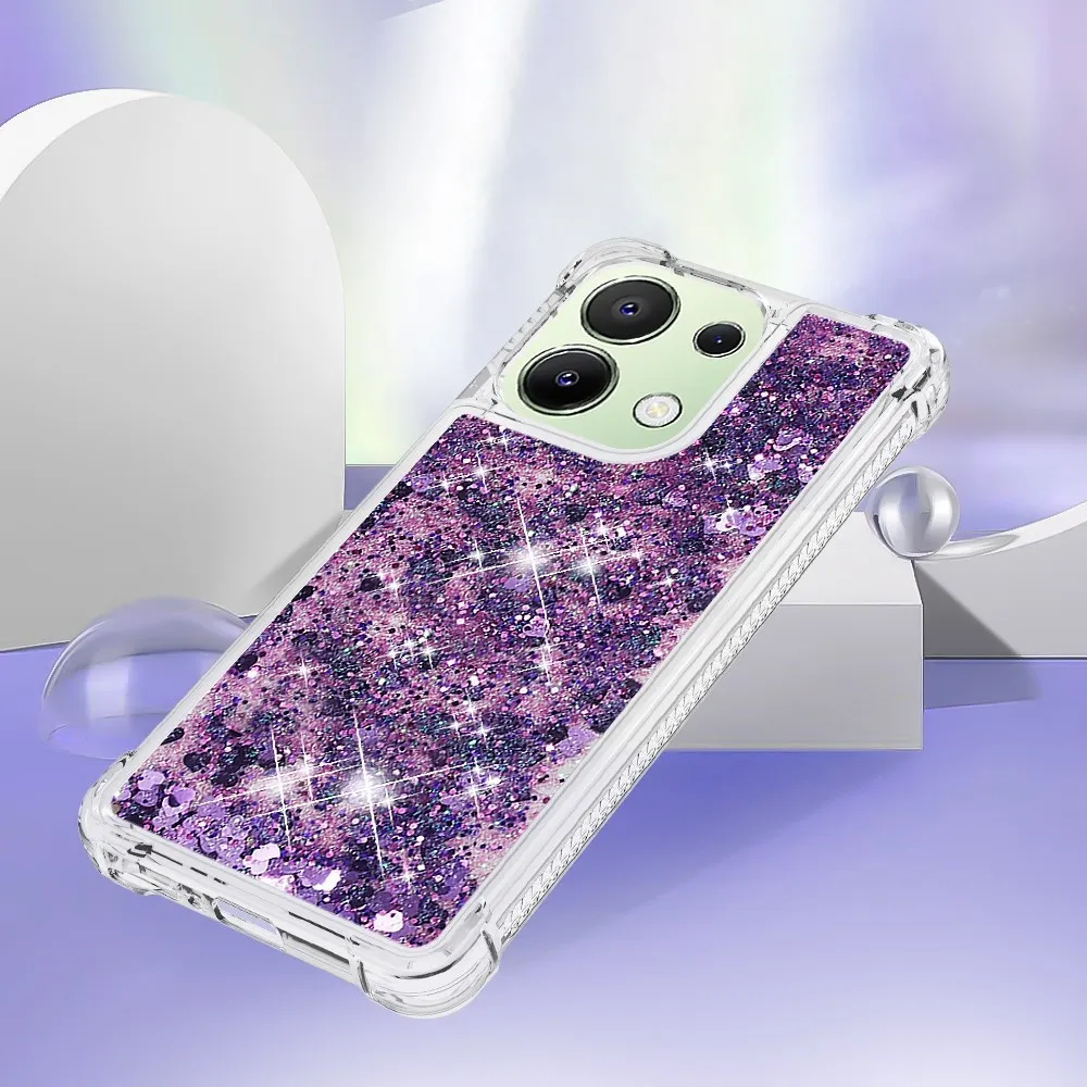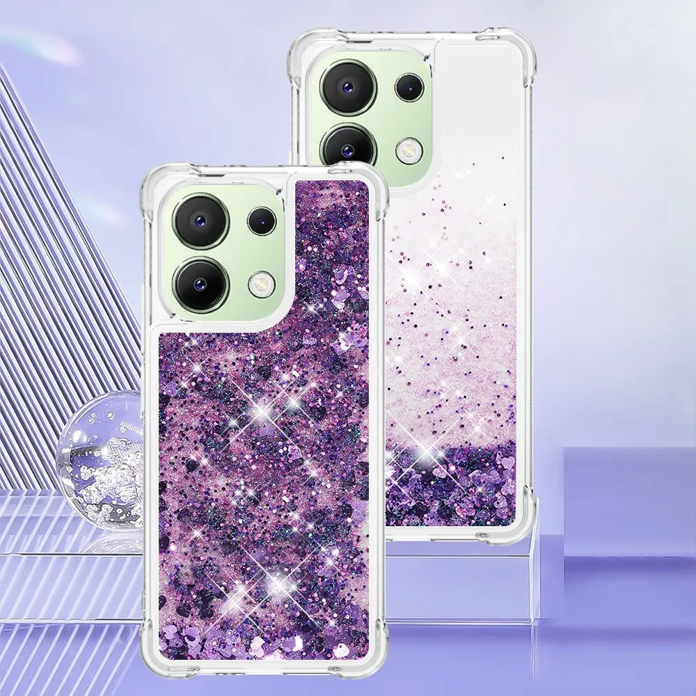 Sötét lila zselés homokóra tok Glitter szívekkel Xiaomi Redmi Note 13 számára