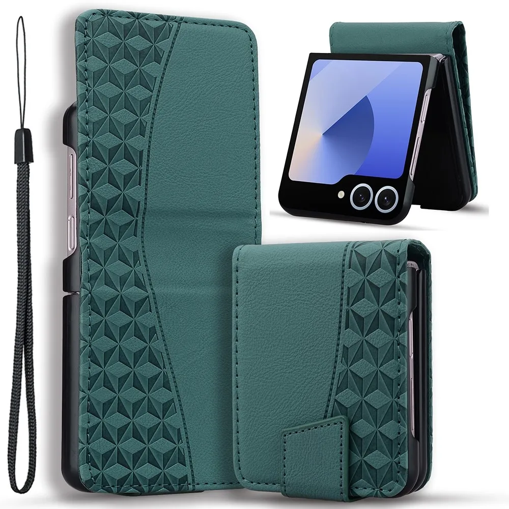 ✅【Stílusos gyémánt dizájn és prémium anyag】Ez a rácsos zöld tok Samsung Galaxy Z Flip7 5G-hez gyémántmintás nyomtatással, kiváló minőségű PU bőrből és tartós TPU-ból készült, a luxus megjelenést a hosszú élettartammal ötvözve. ✅【Pénztárca funkció】3 kártyatartó rekesszel és egy pénztartó zsebbel rendelkezik, így kényelmesen tárolhatja a szükséges holmijait, például kártyákat és készpénzt.