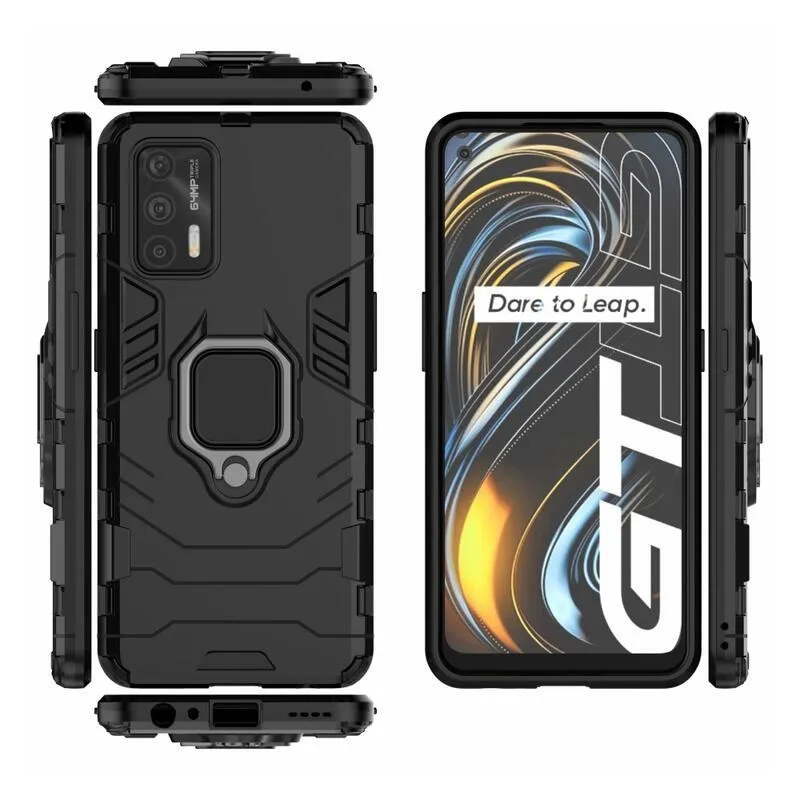 Guardy hibrid tartós borító ujjbeggyel a Realme GT 5G készülékhez - fekete