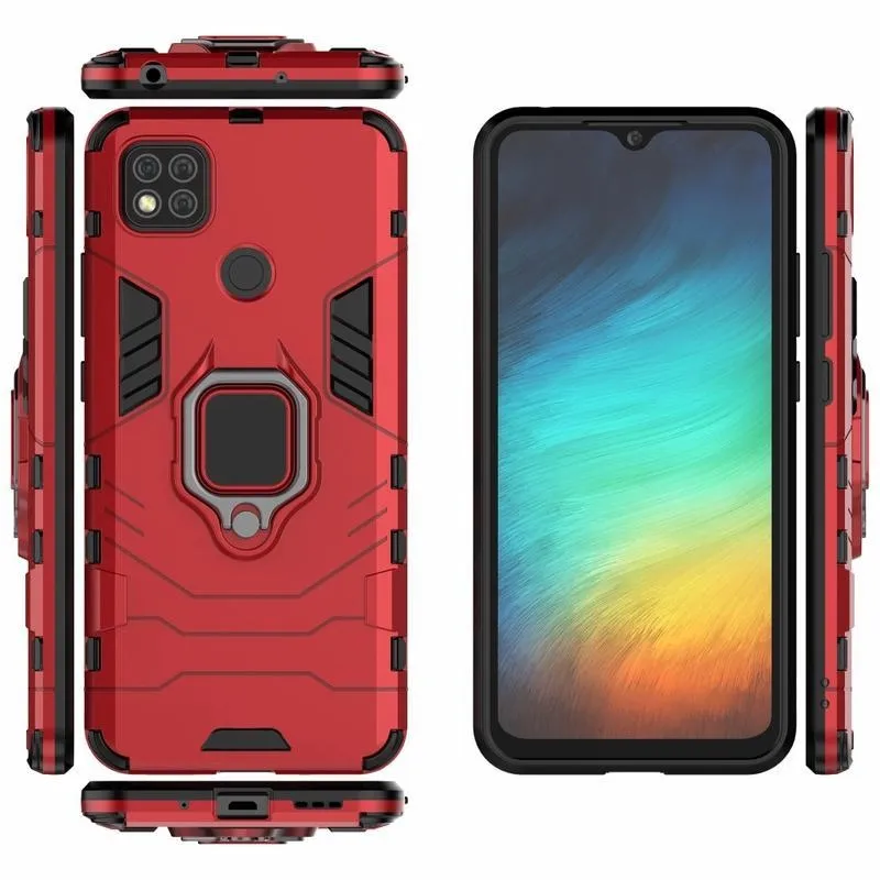 Guardy tartós hibrid tok ujjmarkolattal Xiaomi Redmi 9C-hez - piros