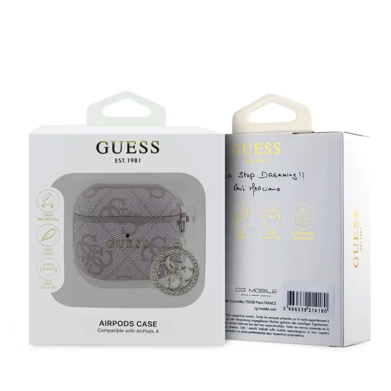 Guess 4G Script PC/PU Charm tok az AirPods 4 rózsaszínhez