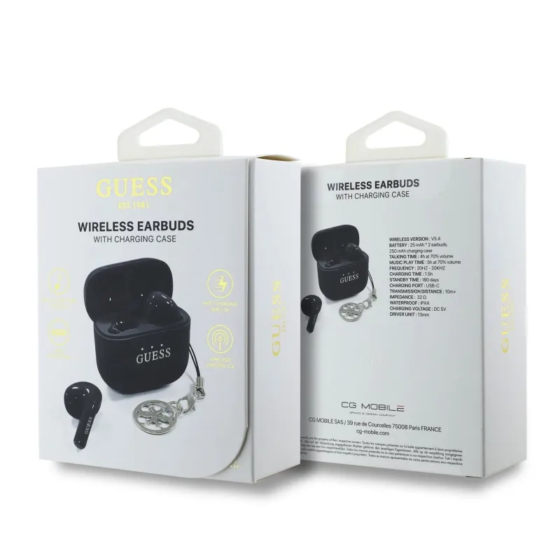 Guess Classic Logo Charm TWS vezeték nélküli fejhallgató fekete