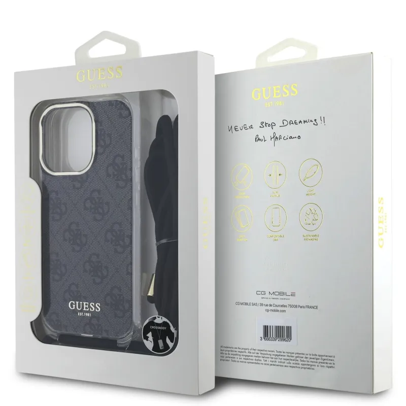 Guess IML 4G nyomtatott keresztpántos hátlapi borító iPhone 16 Pro Fekete