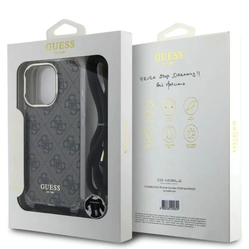Guess IML 4G nyomtatott keresztszíj hátlap iPhone 16 Pro Max barna színű iPhone 16 Pro Max készülékre